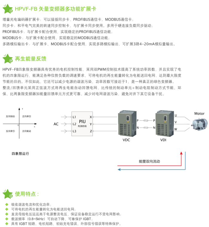 HPVF-FB隔爆兼本安型變頻器以全新的設(shè)計思路,將變頻、矢量控制、隔爆及本質(zhì)安全等技術(shù)相結(jié)合,具有多種控制模式、低速高轉(zhuǎn)矩等特性,可四象限運行,具有能量回饋功能,節(jié)能效果明顯。主要適用于煤礦井下或露天礦山、選煤廠等有爆炸危險場所的大負(fù)荷設(shè)備軟起動、軟停車控制。