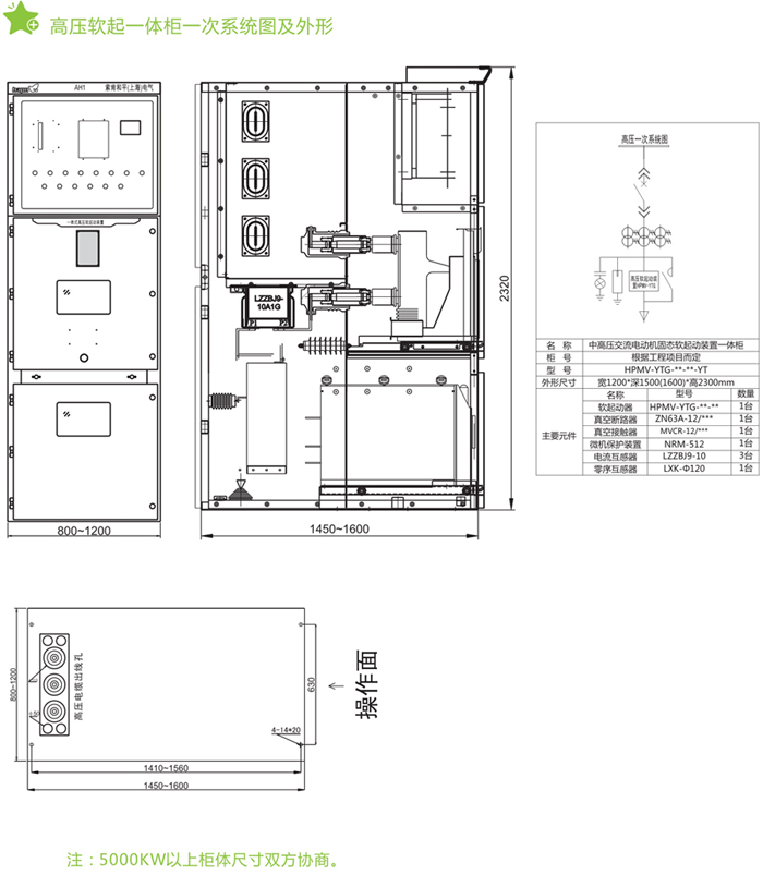 ◆ 將高壓開關、軟起柜和旁路運行柜合成一體柜設計,具有體積小,節(jié)約配電室空間,同等功率下體